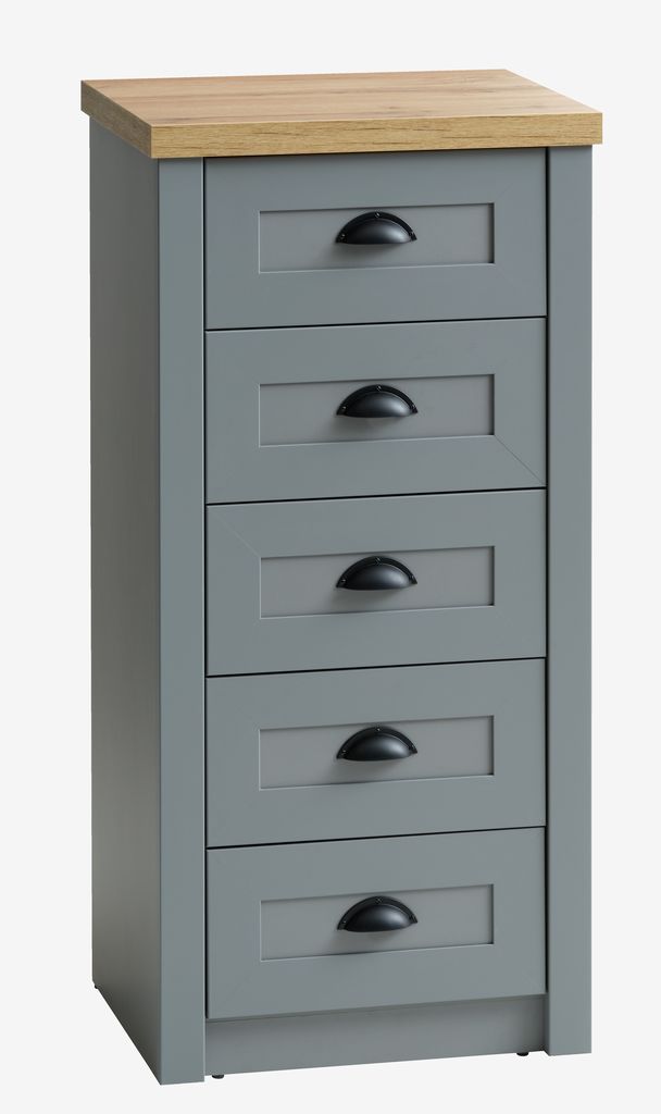 Dekorfolie und MDF. Schubladen mit Vollauszug. Grau. B51 x H107 x T44 cm