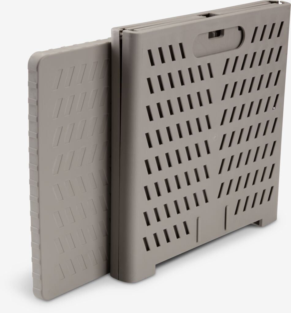 Faltbarer Korb mit Deckel aus Kunststoff (100% recycelt) in einem warmen Grauton. Ideal zum Aufbewahren von allem, von Spielzeug und Hobbybedarf bis hin zu Decken und Büchern. B28 x L30 x H30 cm