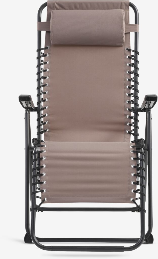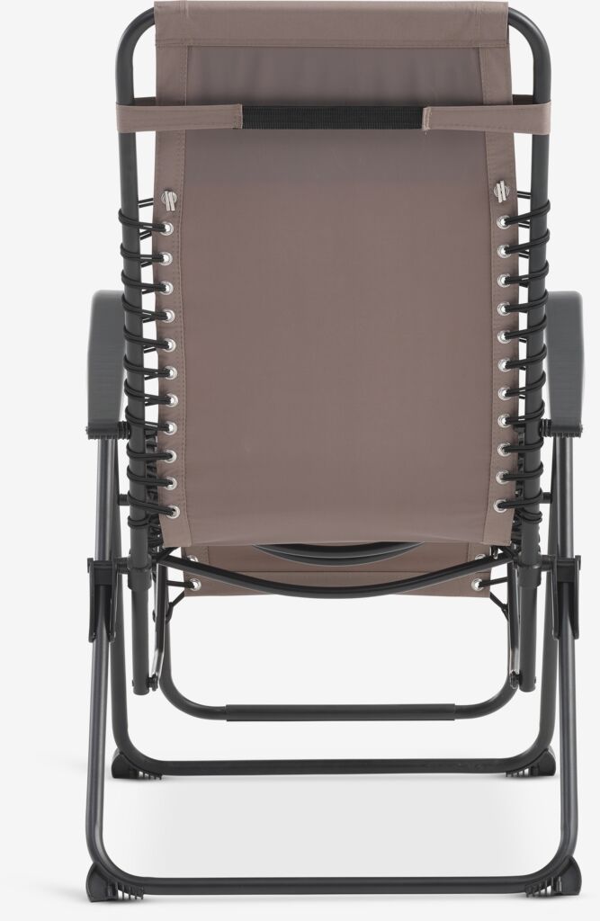 Liegestuhl aus Stahl und Polyester. Stufenlos verstellbare Rückenlehne und Beinauflage. 6 Positionen. Zusammenklappbar.