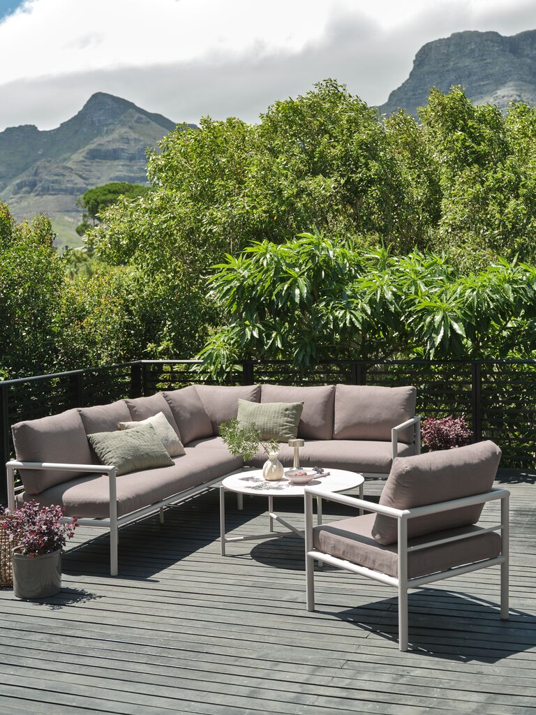 Die Lounge-Möbel bestehen aus strapazierfähigen, hochwertigen und pflegeleichten Materialien. Reinige die Möbel einfach mit Wasser und milder Seife. Um die Lebensdauer der Möbel zu verlängern, lagere sie außerhalb der Saison im Innenbereich.