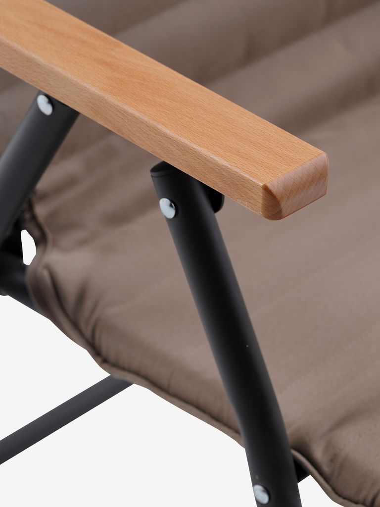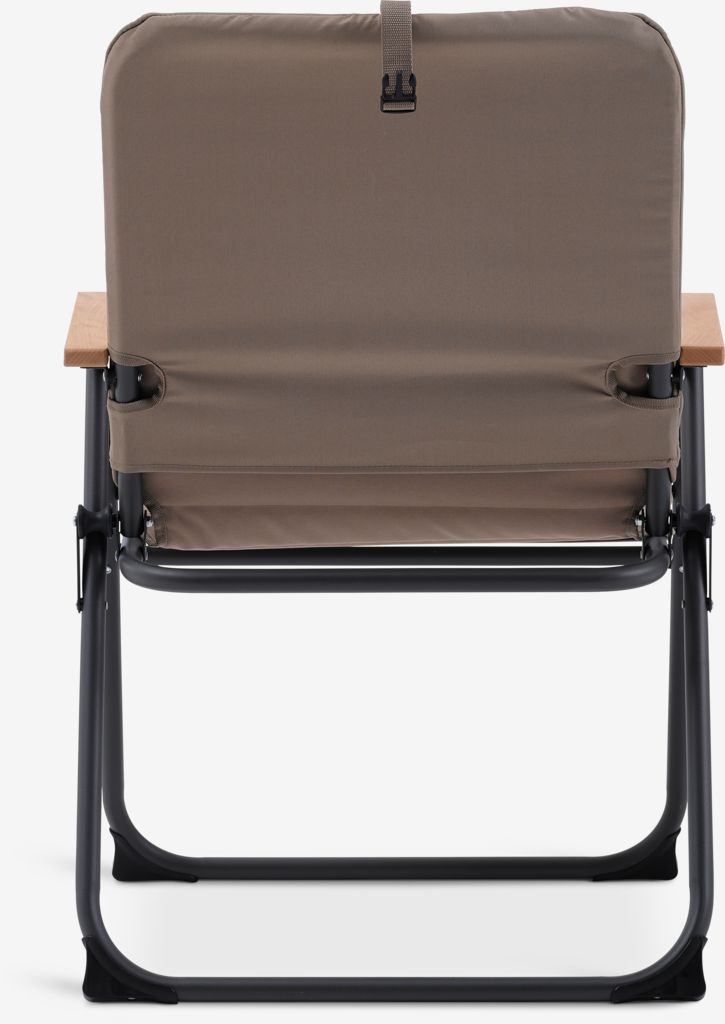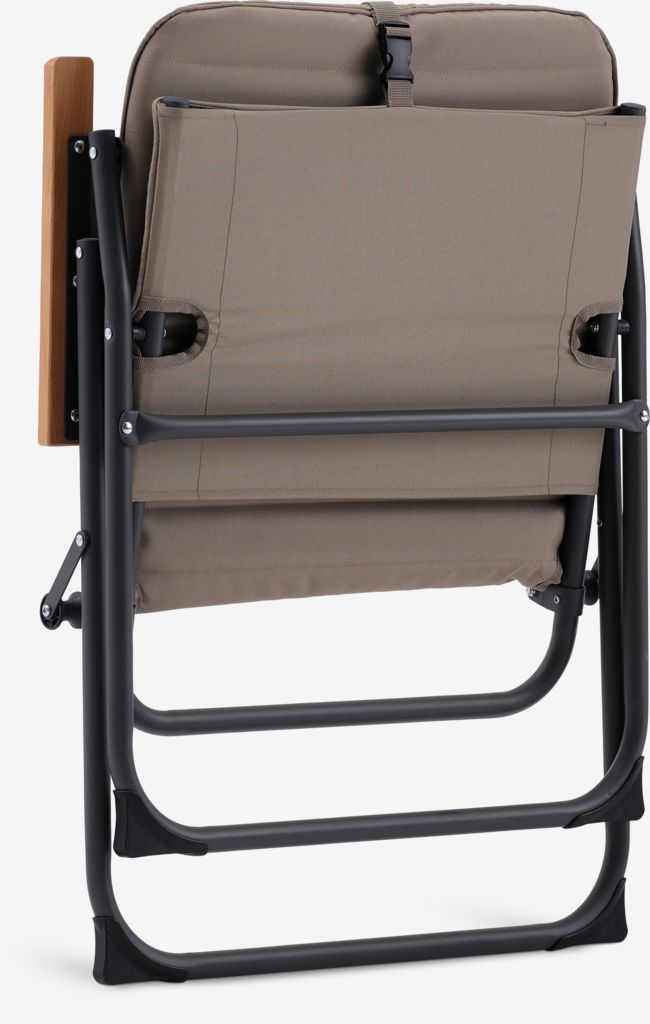 Campingstuhl aus Stahl, Polyester und lackiertem FSC®-Hartholz. Zusammenklappbar.