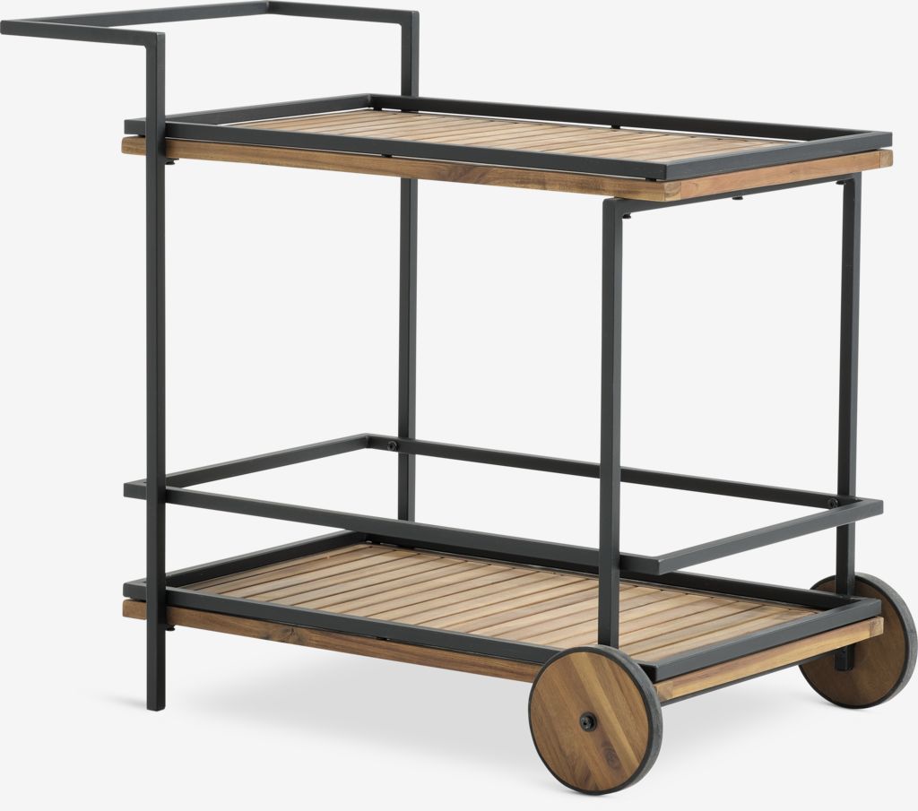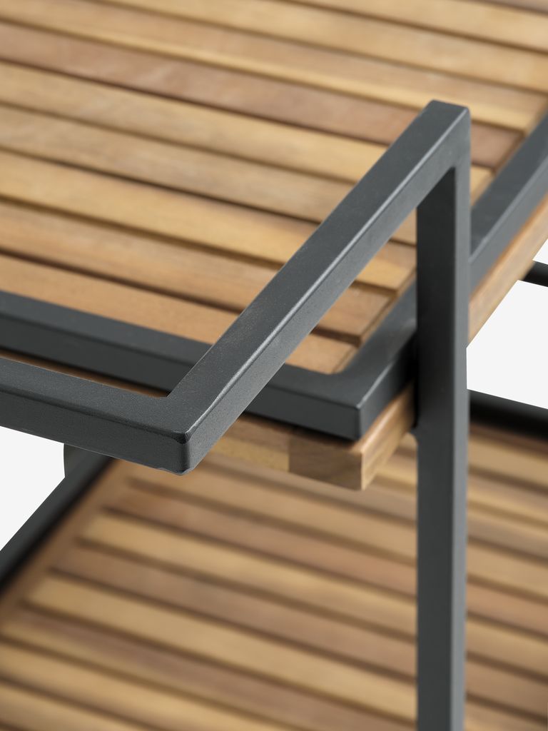 Beistellwagen aus Stahl und geöltem FSC®-Hartholz. B52 x L89 x H75 cm