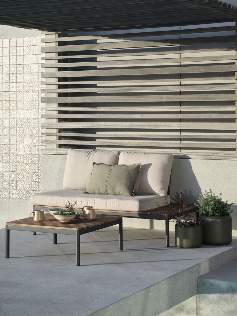 Tisch-Modul für Lounge Set aus Aluminium und geöltem FSC®-Hartholz. Tischmodul für modulares Lounge-Set. B75 x L75 x H30 cm