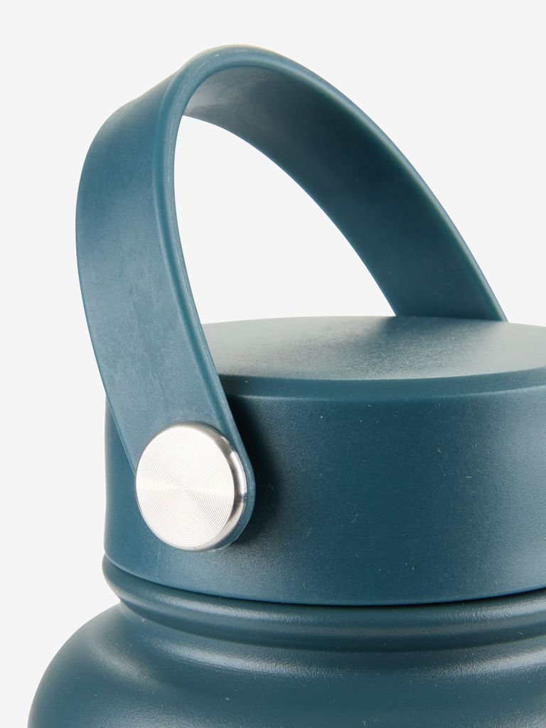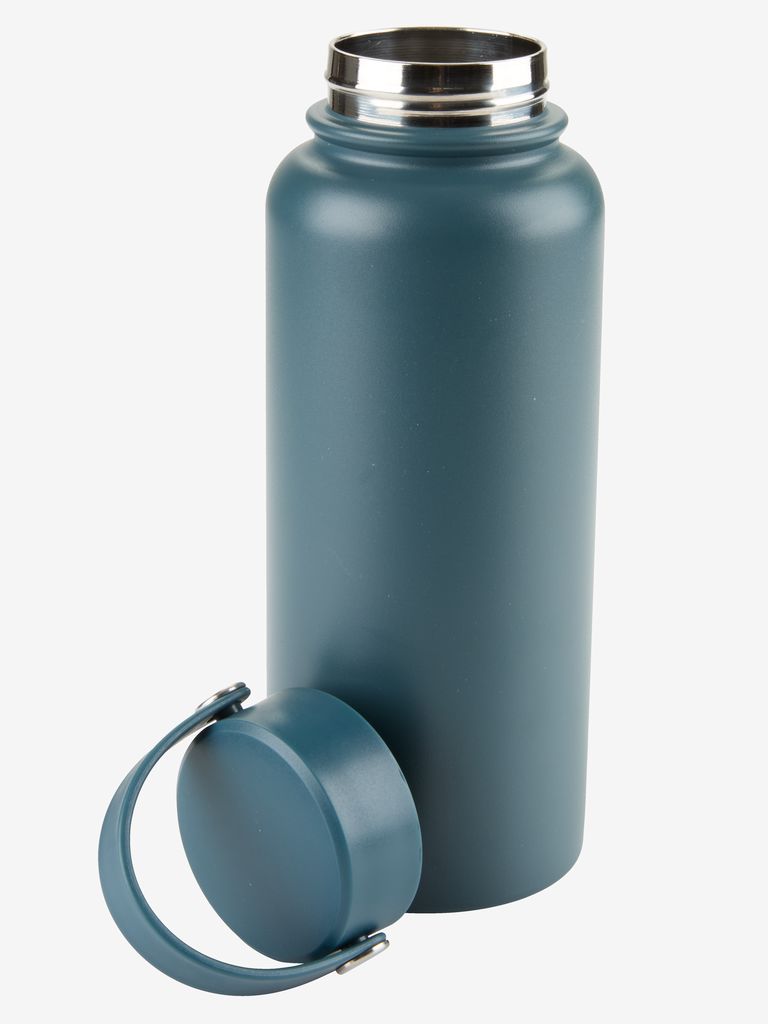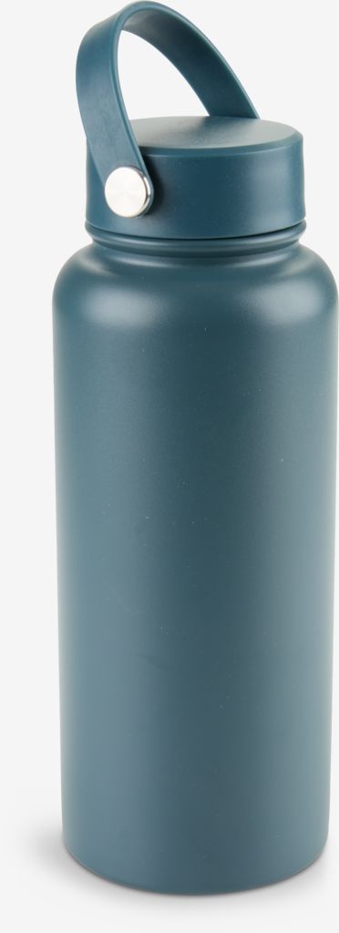 1 Liter Thermotrinkflasche in stilvollem Petrolblau, ausgestattet mit einem praktischen Griff. Die Flasche hält Getränke stundenlang heiss oder kalt und ist damit ideal für Pendler, Sport und Outdoor-Abenteuer. Spülmaschinenfest. Ø9 x H24 cm