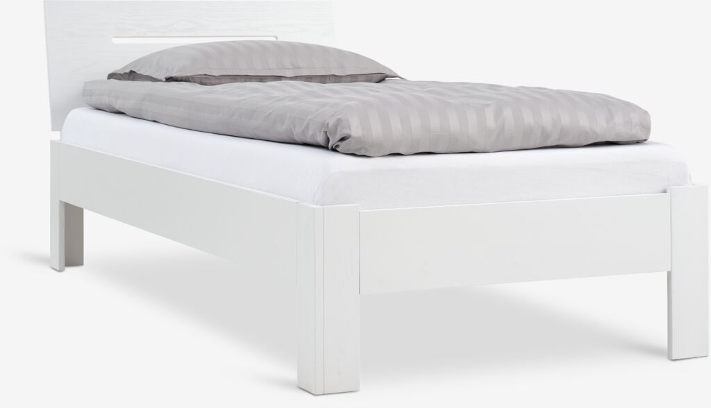 Dit bed besteld voor onze dochter. Super degelijk, stevig en goed bed! Massief grenen en vuren hout. Geen honingraad/karton gevulde delen zoals bij de ikea. Toleranties en maatvoering is ook dik in orde. Alleen 2 voorgeboorde gaatjes voor 2 schroeven om een metalen trekstrip te bevestigen zaten niet helemaal op de juiste plek maar die kon je zo op een andere plek vast schroeven. De lattebbodem die we besteld hebben waren de kopse kanten/latten niet goed voorgeboord. Je kon met lange schroeven deze latten vast draaien maar niet goed vast. Ze werden weer losser/dol en leken niet helemaal goed te pakken. Lijkt een productie foutje te zijn. Maar overall is het bedframe super stevig, mooi en minimalistisch (neemt niet veel ruimte in). Mooi bed!