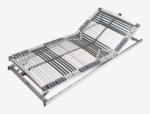 Manuell verstellbarer Lattenrost 80x200 cm. 41 Leisten, unterteilt in 7 Komfortzonen. 9 Doppelleisten mit einstellbarer Härte.