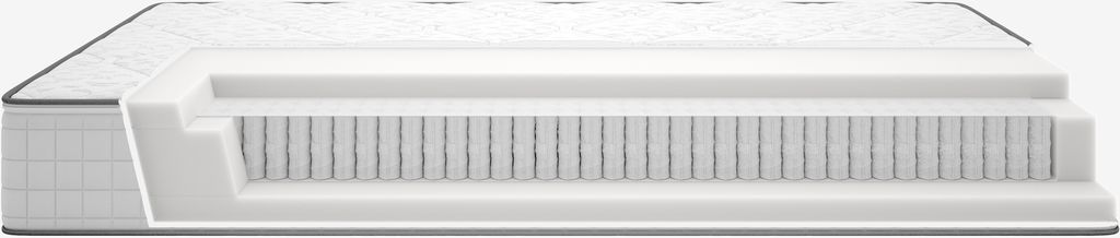 | Komfortzonen | Die Komfortzonen sind so konzipiert, dass sie verschiedene Körperbereiche wie Kopf, Schultern, Lendenwirbelbereich, Hüften und Beine besonders unterstützen. Die Zonen variieren in der Festigkeit, um zum Beispiel eine zusätzliche Lendenwirbelstütze oder eine tiefere Schulterzone zu bieten. Durch die gezielte Unterstützung in bestimmten Bereichen tragen die Komfortzonen dazu bei, den Gesamtkomfort zu erhöhen, eine gesunde Schlafposition zu fördern und Druckstellen zu reduzieren. |