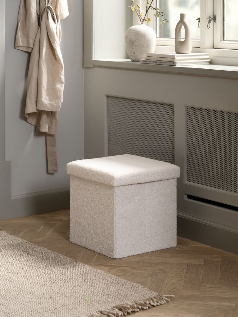 NYSTEDPouf NYSTED 38x38 m/Stauraum Teddystoff off-white