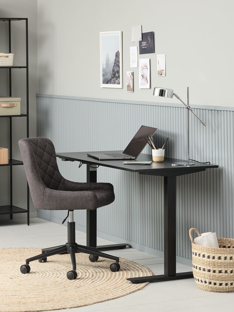 La chaise de bureau PEBRINGE vous offre un bon soutien pour que vous puissiez mieux vous concentrer. Une chaise de bureau est une chaise pratique et confortable, idéale pour le travail occasionnel au bureau ou les moments d'étude. Cette chaise s'adapte à une grande variété de bureaux et offre davantage de flexibilité dans les positions assises. Elle constitue donc un excellent choix pour les bureaux à la maison ou les petits espaces. Le siège est recouvert d'un tissu gris doux avec des détails de couture pour un aspect matelassé. l53 x H79-89 x P61 cm