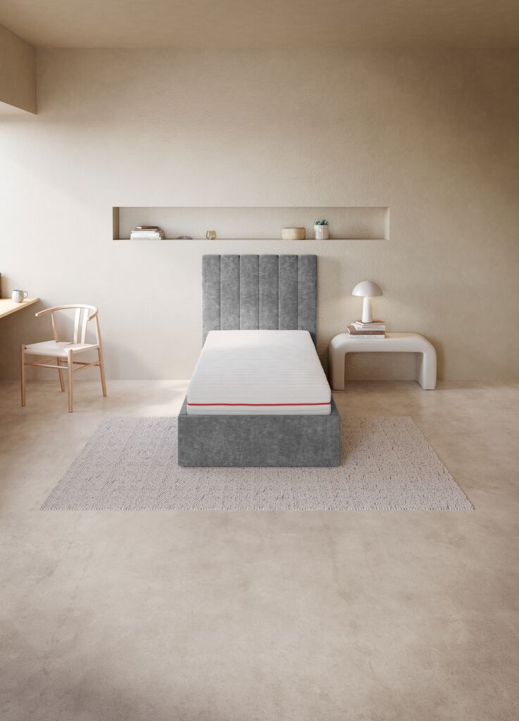 Matelas en mousse de 19 cm d'épaisseur 90x200 cm avec un noyau en mousse polyéther de 17 cm, divisé en 7 zones de confort pour un soutien unique et ergonomique. Housse lavable légèrement matelassée.