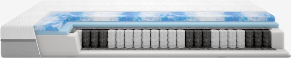 Matelas haut de gamme réversible de 24 cm d'épaisseur 100x200 cm avec deux niveaux de fermeté et 240 ressorts ensachés/m², divisé en 7 zones de confort pour un soutien unique et ergonomique. Rembourrage en mousse gel soulageant la pression sur un côté et en mousse polyéther sur l'autre. La mousse gel s'adapte à votre corps et évacue l'excès de chaleur. Housse lavable.