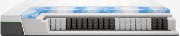 Matelas à ressorts réversible de 24 cm d'épaisseur 140x200 cm avec 240 ressorts ensachés/m², divisé en 5 zones de confort pour un soutien précis et optimal. Rembourrage en mousse gel soulageant la pression et mousse polyéther sur un côté, et en mousse polyéther sur l'autre. La mousse gel s'adapte à votre corps et évacue l'excès de chaleur. Housse lavable.