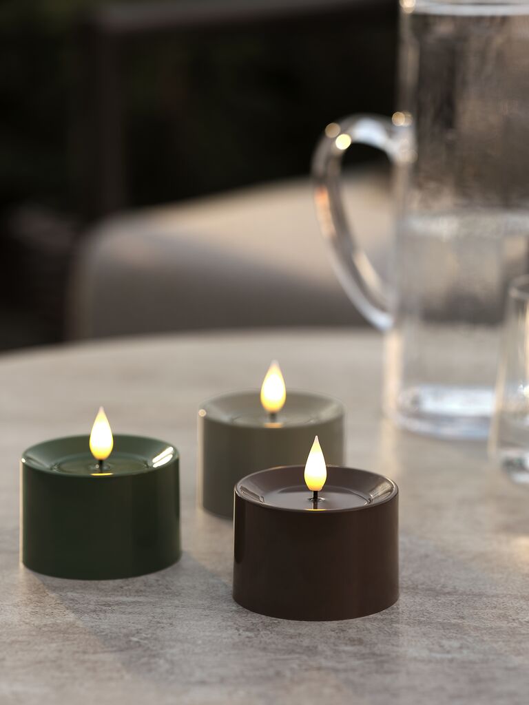 Cette bougie chauffe-plat LED crée une ambiance chaleureuse et accueillante dans votre jardin ou votre maison. Elle constitue une alternative sûre et sans flamme aux vraies bougies et dispose d'une fonction minuterie pratique. Nécessite 2 piles AA (non incluses). Disponible en couleurs assorties et vendue à l'unité. Ø8 x H8 cm