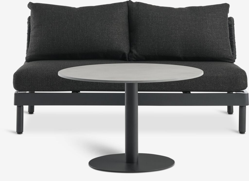 Installez-vous confortablement dans votre espace extérieur avec cet ensemble lounge qui combine la table d'appoint HELAGS avec le canapé lounge VOSS. Cet ensemble de jardin 2 places noir comprend un canapé avec des coussins confortables et une table d'appoint avec un plateau en fibre d'argile.