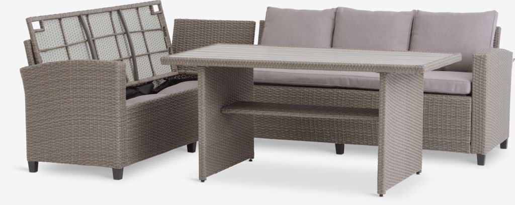 Köpte det sommaren 2021 och det är redan trasigt har spruckit lite överallt. Det har stått under tak hela tiden. Har varit i kontakt med dem på jysk men de kunde inte göra något för garantin gäller bara 3 år. Kommer aldrig mer att handla där i från.