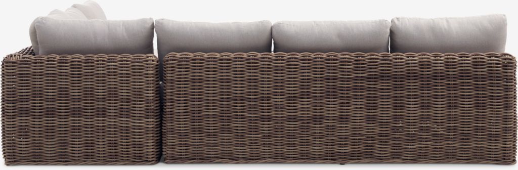 L'ensemble lounge EJER est fabriqué à partir de matériaux durables et de qualité qui ne nécessitent aucun entretien. Il suffit de nettoyer les meubles avec de l'eau et un savon doux. Entreposez les coussins à l'intérieur hors saison pour prolonger leur durée de vie.