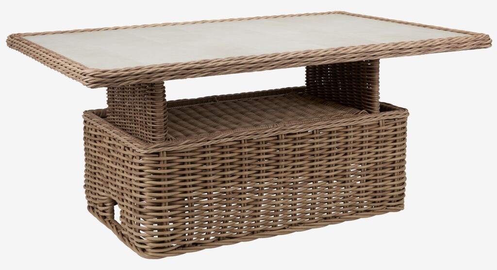 La table lounge est dotée d'un plateau en céramique. Il s'agit d'un matériau durable qui résiste aux rayures, aux taches et à la chaleur. Vous pouvez par exemple poser des casseroles et des poêles chaudes directement sur la surface. La céramique résiste aux intempéries, ce qui signifie qu'elle peut supporter l'exposition au soleil, à l'humidité et aux changements de température.