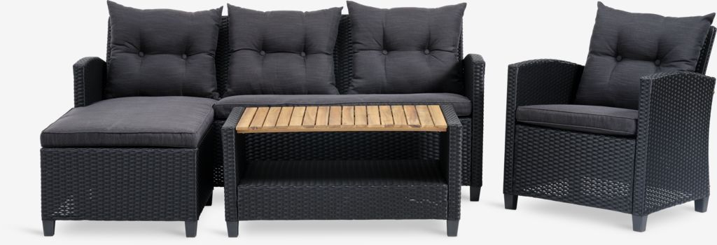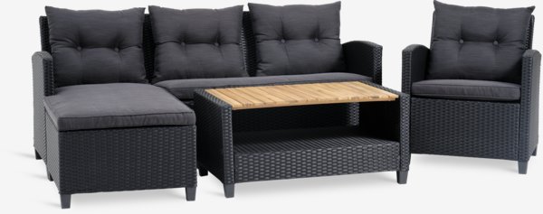 VENEnsemble lounge VEN 4 personnes avec méridienne noir