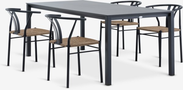 LANGET + TAGMARKTable LANGET L207 + 4 chaises de jardin TAGMARK noir