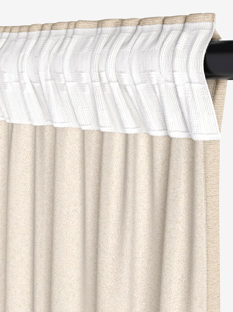 | En-tête de rideau | Bande de renfort et crochets, Tête coulissée |