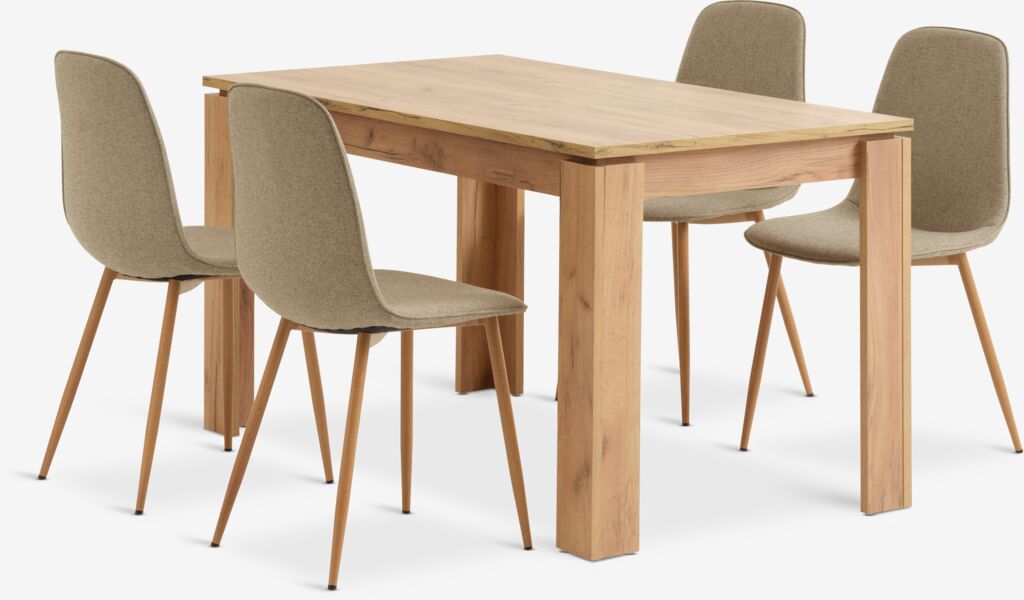 LINTRUP + BISTRUPTable LINTRUP L140 chêne naturel + 4 chaises BISTRUP sable