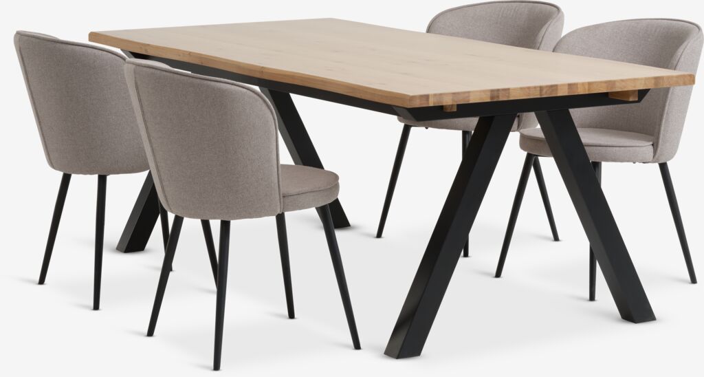 SANDBY + RISSKOVTable SANDBY L210 chêne naturel + 4 chaises RISSKOV gris