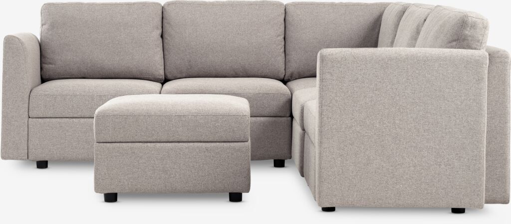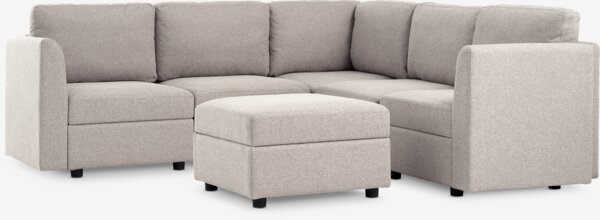 Canapé modulable OKSBY 5 pers. angle a/rangement tissu sable