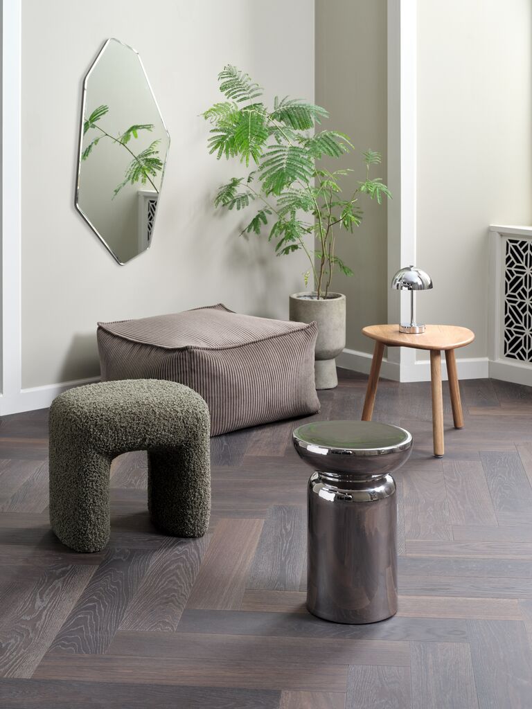 Pouf ANDST 46x38 tissu bouclette vert olive