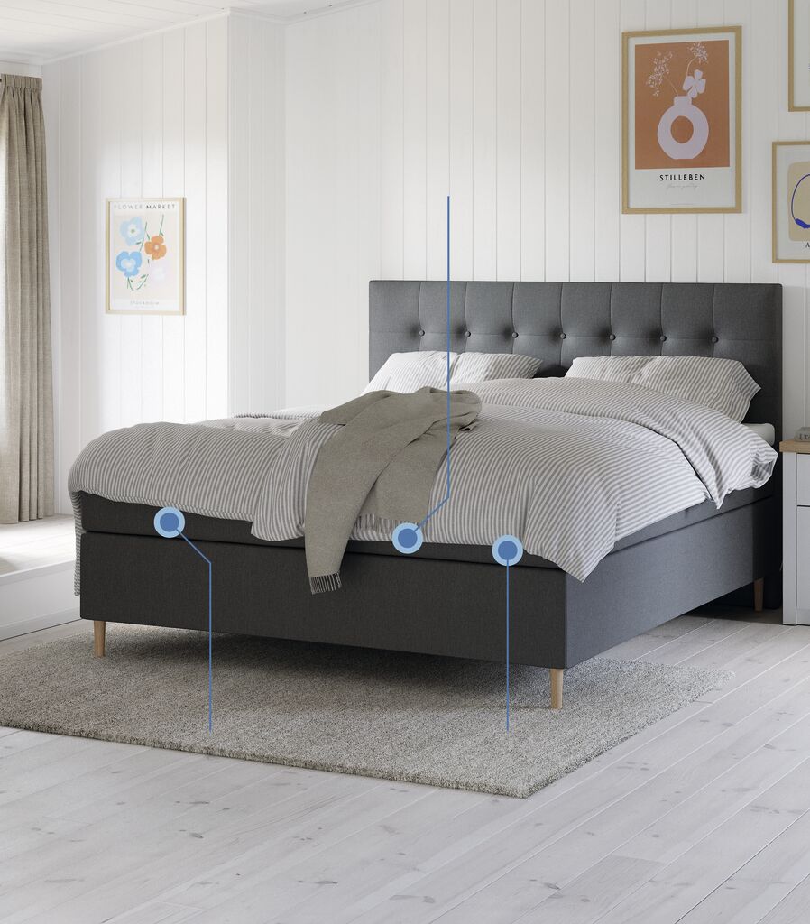 VELFJORDEN + FLYAbasicLetto boxspring 160x200cm VELFJORDEN + FLYA Grigio-40 Rigido