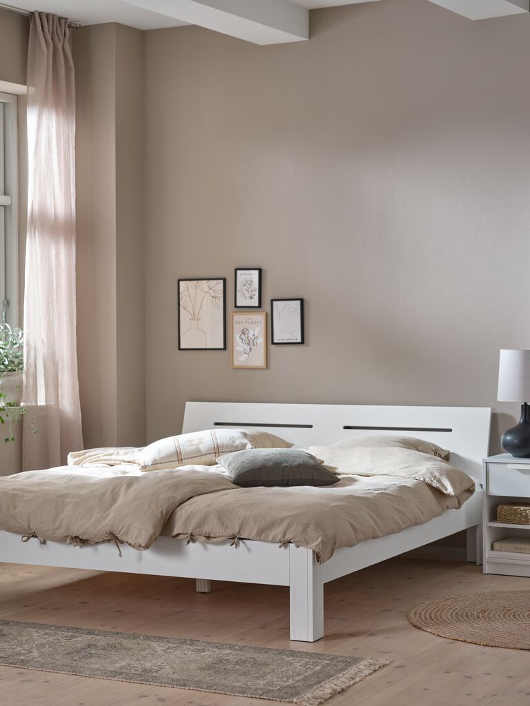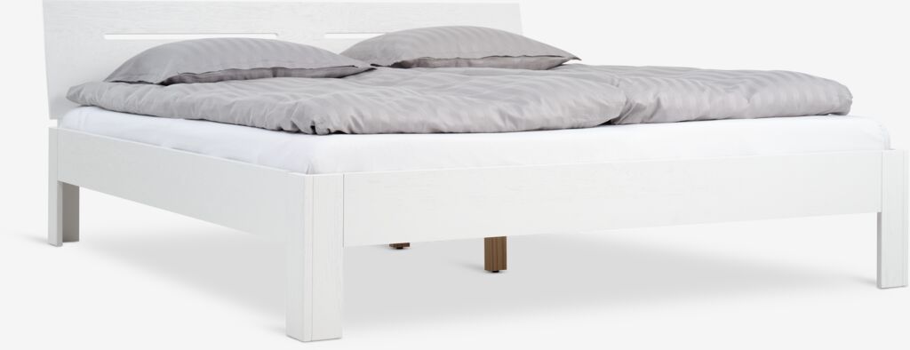 Dit bed besteld voor onze dochter. Super degelijk, stevig en goed bed! Massief grenen en vuren hout. Geen honingraad/karton gevulde delen zoals bij de ikea. Toleranties en maatvoering is ook dik in orde. Alleen 2 voorgeboorde gaatjes voor 2 schroeven om een metalen trekstrip te bevestigen zaten niet helemaal op de juiste plek maar die kon je zo op een andere plek vast schroeven. De lattebbodem die we besteld hebben waren de kopse kanten/latten niet goed voorgeboord. Je kon met lange schroeven deze latten vast draaien maar niet goed vast. Ze werden weer losser/dol en leken niet helemaal goed te pakken. Lijkt een productie foutje te zijn. Maar overall is het bedframe super stevig, mooi en minimalistisch (neemt niet veel ruimte in). Mooi bed!