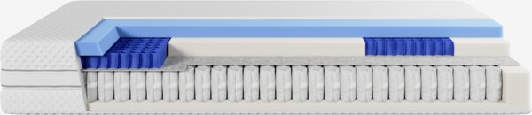 Il nucleo del materasso è costituito da uno strato di molle insacchettate da 12 cm con 240 molle per m². Le molle creano un materasso flessibile e di supporto che si adatta alle curve del corpo in qualsiasi posizione di sonno. Ogni molla è racchiusa in una tasca di tessuto, consentendo un movimento indipendente che aumenta il comfort e riduce al minimo il rumore per un sonno più ristoratore.