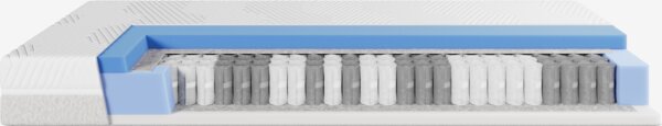 Materasso di qualità 140x200 cm alto 21 cm con molle pocket Hourglass™ 265/m², divise in 11 zone comfort. Il materasso è imbottito con schiuma di polietere e schiuma di gel che allevia la pressione.La schiuma di gel si adatta al tuo corpo e allontana il calore in eccesso. Fodera lavabile con imbottitura morbida e spessa.