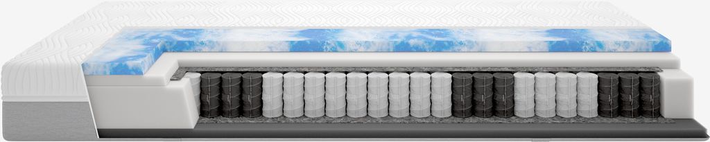 Materasso a molle 80x200 cm reversibile alto 24 cm con molle insacchettate 240/m², suddiviso in 7 zone di comfort che offrono un supporto unico ed ergonomicamente corretto. Il materasso è imbottito con schiuma gel che allevia la pressione su un lato e schiuma poliuretanica sull'altro. La schiuma di gel si adatta al tuo corpo e allontana il calore in eccesso. Rivestimento lavabile.