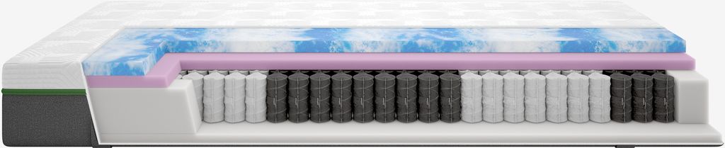 | Strato di molle 1 (dall'esterno) | Ogni molla pocket è protetta da una tasca in tessuto che rende il materasso flessibile, ne aumenta la durata e riduce il rumore. |