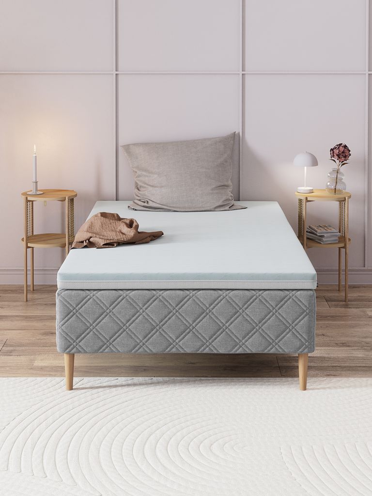 Il topper in memory foam AIR BOKSELVI 120x200 cm di WELLPUR® è progettato per migliorare il comfort del sonno. Un materasso topper viene posizionato sopra un materasso tradizionale per adattarne la sensazione e prolungarne la durata. Il memory foam AIR aiuta ad alleviare la pressione, garantendo un sonno confortevole e ristoratore. E se di notte si tende ad avere un po' di caldo, questo materasso superiore è un'ottima scelta grazie alle sue proprietà rinfrescanti.