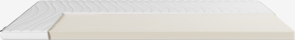 Topper 80x190 cm alto 6 cm con anima in lattice traspirante, che allontana il calore in eccesso dal corpo. Fodera lavabile in 100% poliestere (65% riciclato)con trapuntatura morbida e spessa e trattata con il biocida GREENFIRST®.