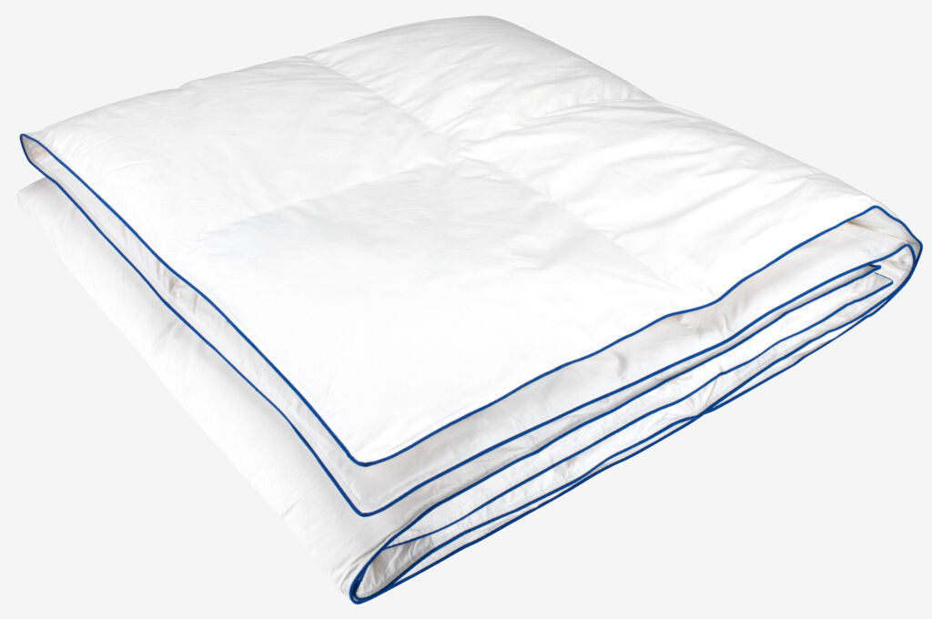 Piumino caldo in piumino d'anatra 160x210 cm con 60% piumino d'anatra bianca/40% piume d'anatra, 1140 g. Fodera morbida in batista di 100% cotone. Cucito in scomparti con lati trapuntati interni per un ottimo potere isolante senza zone fredde. Filling power 400. Lavabile a 60°C.