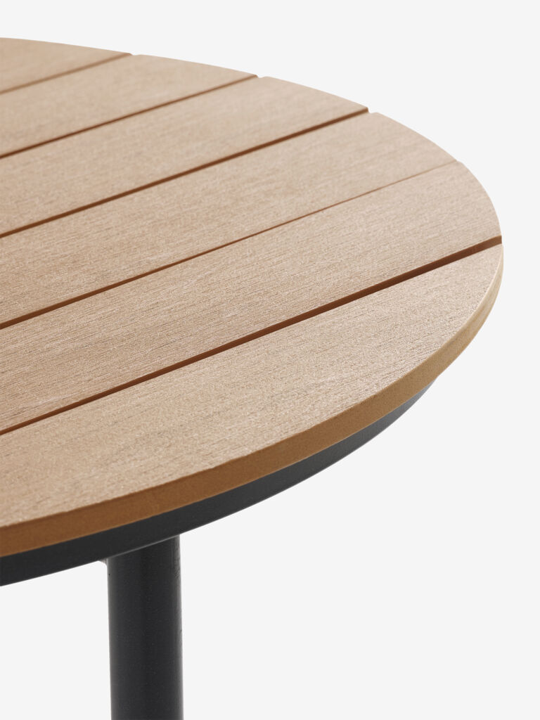 | Materiale | Telaio: Acciaio, Piano del tavolo: Il legno artificiale è un materiale sintetico che non richiede manutenzione e con una struttura in legno dall'aspetto naturale. Si ottiene da materiali di plastica, quali ad esempio il polistirene che lo rende un materiale resistente al tempo e alle intemperie. Il legno artificiale è dotato di protezione ai raggi UV che rende la superficie resistente ai lavaggi. |