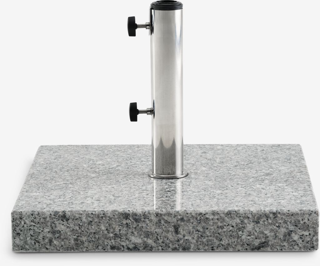 Base per ombrellone in granito e acciaio inossidabile. 45 kg. Per ombrellone grande. P50 x L50 x H8 cm