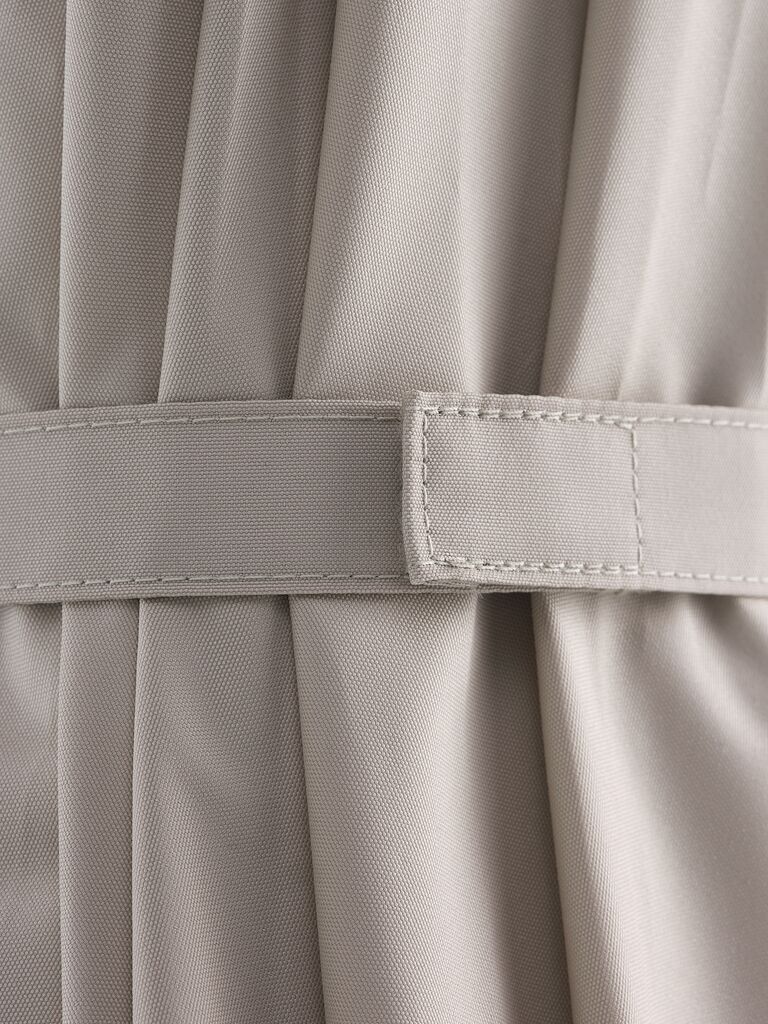 Lo sfiato di ventilazione nella parte superiore del telo riduce la pressione del vento e favorisce la circolazione dell’aria, aumentando la stabilità dell’ombrellone in caso di vento.