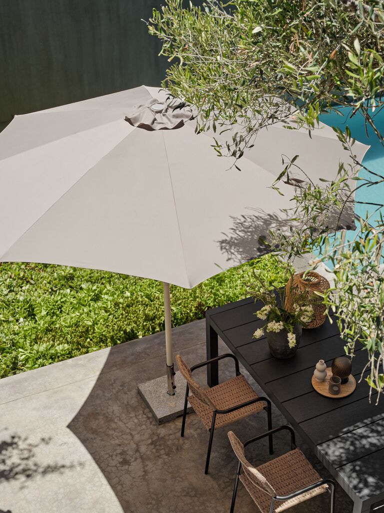 L’ombrellone grande HALK è dotato di una funzione di inclinazione che permette di regolare l’ombra in base alla posizione del sole, ideale per il mattino o il tardo pomeriggio.