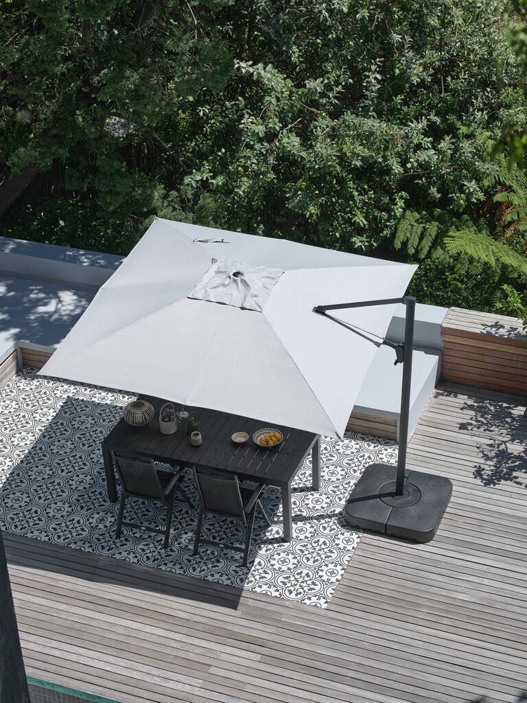 Unisci stile e funzionalità con l’ombrellone laterale BUBERG. Con rotazione a 360°, funzione di inclinazione continua e un telo resistente all’acqua, questo ombrellone da giardino grigio chiaro offre un’ombra confortevole e regolabile per il tuo spazio esterno. L300 x P300 x H250 cm