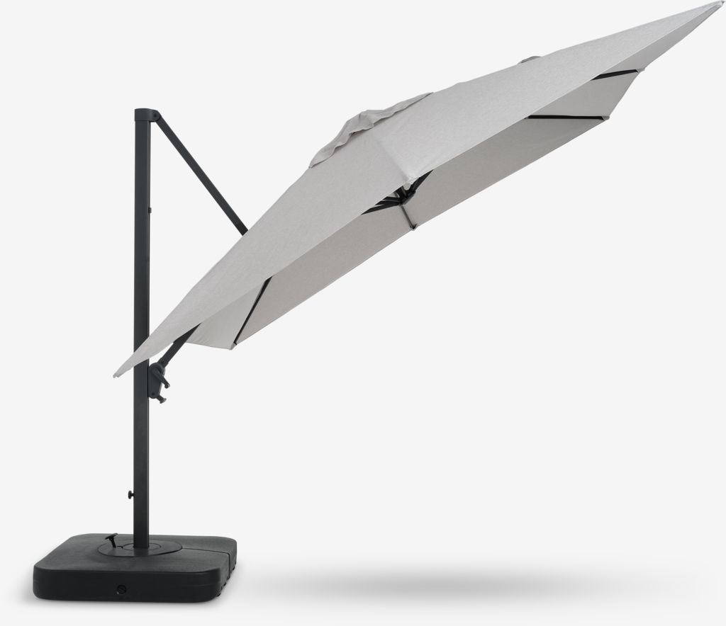 L’ombrellone a braccio BUBERG include una base robusta da 120 litri, da riempire con sabbia e acqua per garantire la massima stabilità. È inclusa anche una custodia impermeabile per proteggere l’ombrellone quando non è in uso.