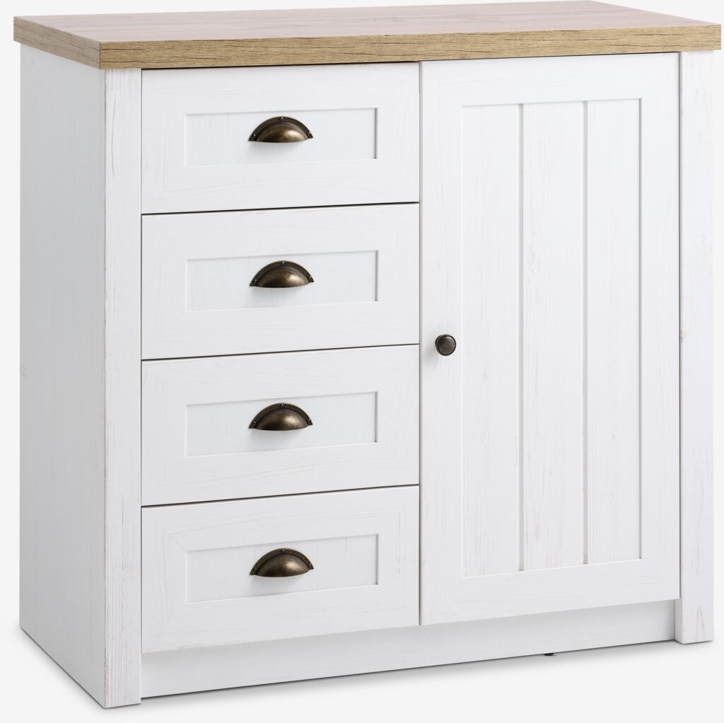 MARKSKEL Commode 4 tiroirs 1 porte MARKSKEL blanc/chêne