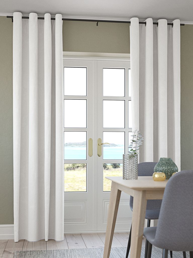 Con occhielli e fermatenda. Disponibile in diversi colori. 1 x L140 x H300 cm.