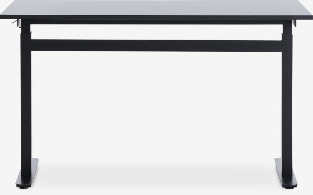 La scrivania regolabile in altezza LUNDTOFT offre una postazione di lavoro regolabile e flessibile. È possibile regolare facilmente l'altezza della scrivania sia in piedi che seduti grazie al silenzioso meccanismo di sollevamento a gas che non consuma energia. Il design senza cavi ti permette di posizionare la scrivania dove preferisci. La scrivania nera ha un design minimal e un piano dalle linee pulite. L70 x P130 x H71-117 cm